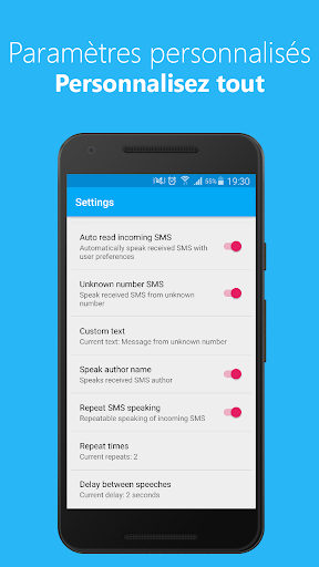 Cette application est très utile lorsque vos mains sont occupées, surtout lorsque vous conduisez ou faites quelque chose, parce que tous les messages SMS entrants seront lus sans vos mains!