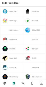 Avec SSH Tunnel Maker, vous pouvez créer un compte SSH / VPN et vous connecter en mode VPN à de nombreuses options de serveur.