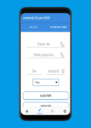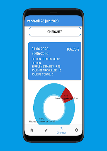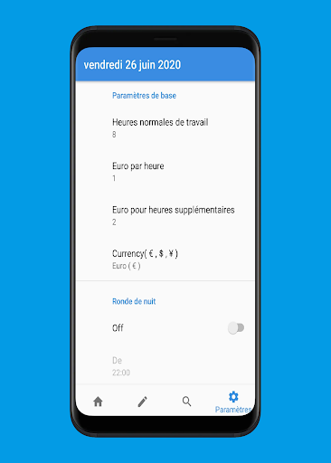 Lors de la première connexion à la demande, l'utilisateur doit mettre les heures normales de travail, l'argent par heure travaillée et l'argent par heure supplémentaire.