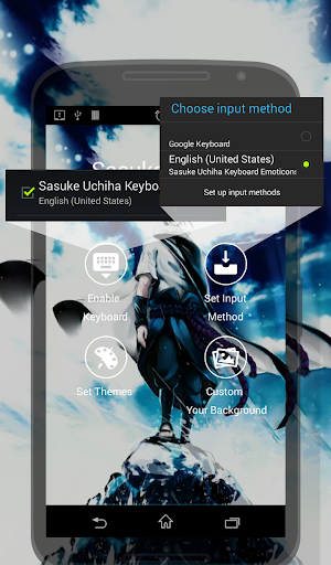 1. Make sure you have installed Sasuke Uchiha HD Keyboard Free from Google Play.