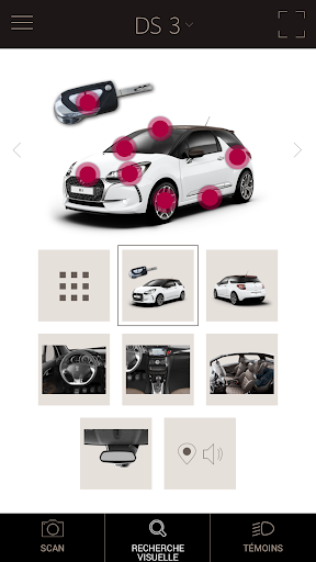 Grâce à l'appareil photo de votre téléphone mobile, vous pouvez désormais scanner la partie de votre véhicule DS dont vous souhaitez connaître le détail. L'application identifiera automatiquement l'élément visualisé et vous donnera les informations nécessaires immédiatement.