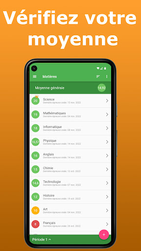 L'interface utilisateur est extrêmement simple et intuitive, les matières seront colorés en fonction de votre moyenne pour vous aider à mieux comprendre ce que vous faites bien et en quoi avez-vous des problèmes!