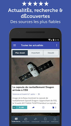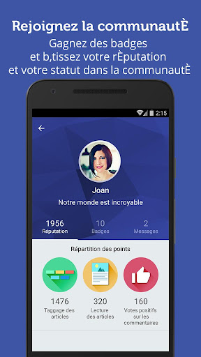 - Une communautÈ de passionnÈs de science ! Un systËme de commentaires intÈgrÈ dans l'application, un marquage d'article, des points de rÈputation et des badges !