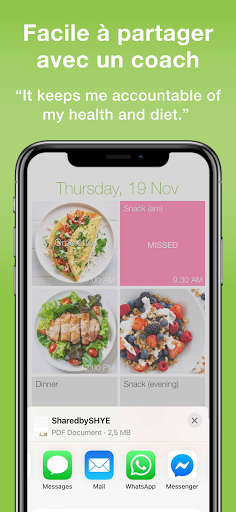 9. Journal alimentaire facile à partager avec un professionnel (coach, entraîneur personnel, nutritionniste ou docteur)