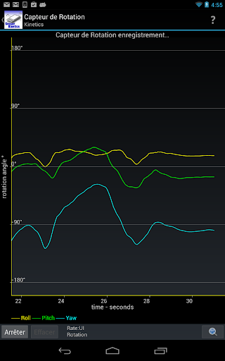 Vous pouvez comparer les performances des capteur gyroscope, capteur d'accélération linéaire et le capteur de rotation. Acquérir une meilleure compréhension du comportement de ces capteurs pendant que vous modifiez le paramètre de retard ou d'activer / désactiver des capteurs spécifiques, et appliquer le filtrage avancées.