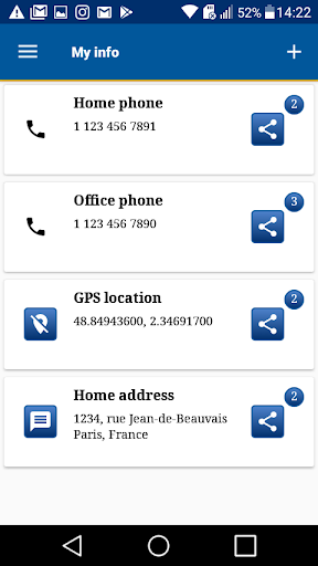 - Créer vos infos : numéros de téléphone, adresses emails, coordonnées GPS