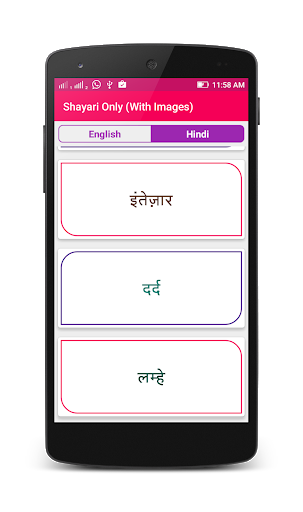 Shayari Only App provides large collection of all types Hindi&English Shayari. Tell us your rating and review for this App.