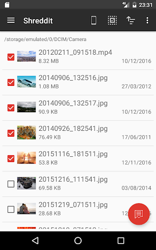 L'application fournit un aperçu des fichiers multimédias pour vous donner une meilleure idée du contenu que vous souhaitez effacer. Vous pouvez utiliser l'application avec votre gestionnaire de photos préféré, comme avec Google Photo. Il suffit de sélectionner une ou plusieurs images / vidéos et d'envoyer à la déchiqueteuse pour les effacer en permanence.