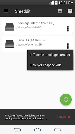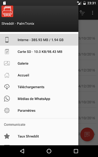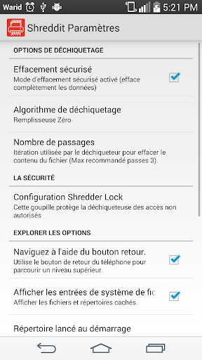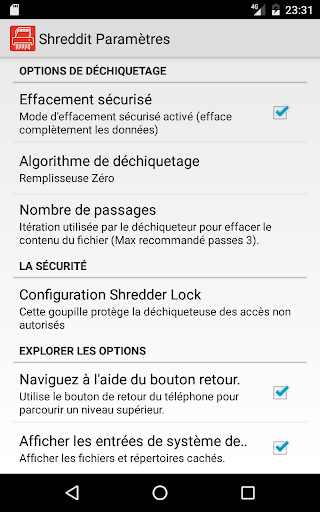 SHREDDIT est une gomme de données Android qui supprime en toute sécurité les fichiers les rendant irrécupérables. Cet outil efface complètement vos données et protège de tomber dans des mains malveillantes. Il déploie un algorithme de déchiquetage rapide qui détruit des volumes de données énormes PERMANENT en quelques secondes. La technique spécialement conçue pour fonctionner pour des dispositifs de stockage interne et externe avec des tailles de fenêtre (tampon) optimisées pour déchiqueter des données avec efficacité et fiabilité. Le logiciel utilise la puce de façon intelligente pour le déchiquetage des données donnant plus de temps d'efficacité tout en effaçant. Ce logiciel n'a pas de service de fond et donc pas de frais généraux et parfaitement sûr de garder dans votre ensemble d'outils.