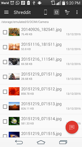 Bien que cet outil possède son propre explorateur de fichier léger pour fournir un accès facile à votre galerie et aux données personnelles, il offre également une forte intégration avec le gestionnaire de fichiers intégré (ou n'importe quel gestionnaire de fichiers tiers) de votre appareil. Comme par exemple dans ES File Explorer, sélectionnez un ou plusieurs fichiers et accédez à Share> Shreddit, l'application prend tous ces fichiers en entrée et les déchiquete.