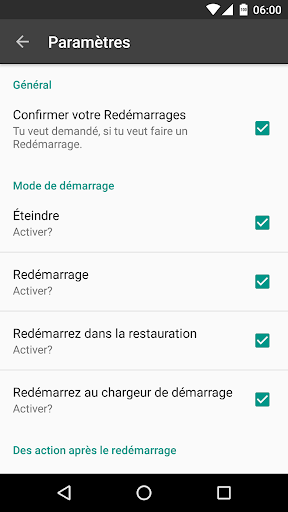 Avec Power Menu , vous pouvez sélectionner différentes options de redémarrage. Les options suivantes sont disponibles: