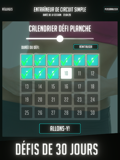 - un défi quotidien pour encourager l'entraînement à la maison avec l'une des meilleures activités de renforcement de base et de fitness disponibles, sans salle de sport équipement nécessaire! Personnalisez les intervalles selon vos besoins.