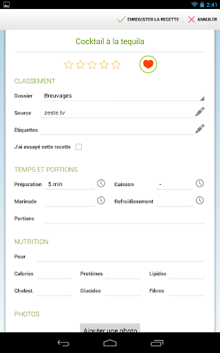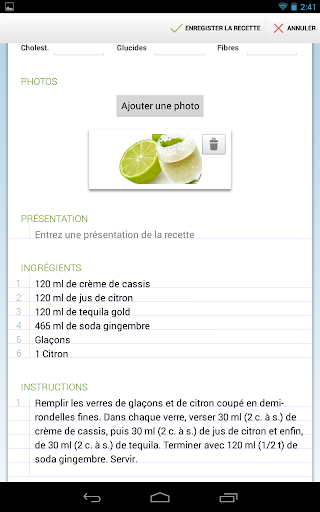 - Un formulaire de saisie facile, mais détaillé pour entrer vos propres recettes.
