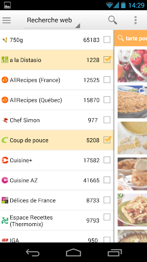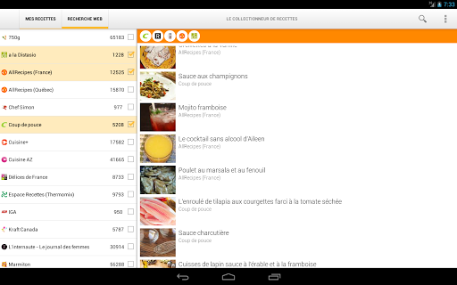 - Un outil permettant de rechercher parmi plus de 300 000 recettes provenant de sites de recettes francophones populaires (Marmiton, Recettes du Québec, Ricardo etc.). Chaque recette peut être importée et classée dans votre collection privée.