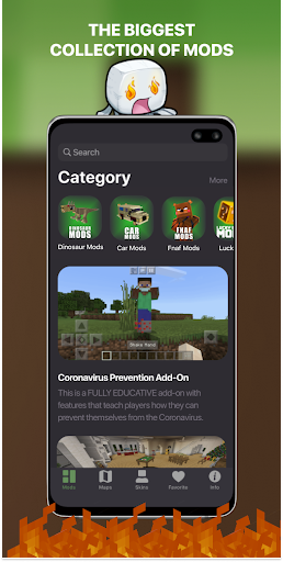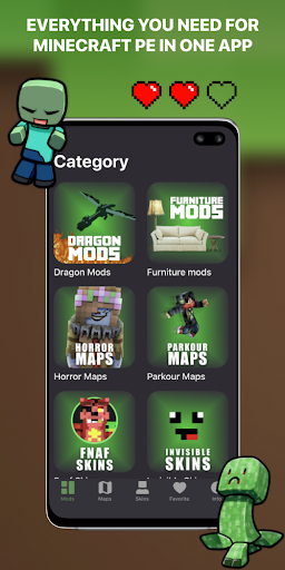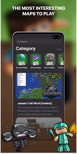 Tons of Maps, Mods and Skins for Minecraft PE (Pocket Edition) for playing on the network in one app. Every category have a huge list of items.