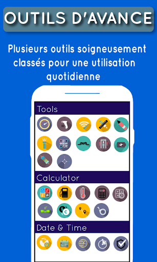 est une boîte à outils et un gestionnaire d’applications pour applications mobiles, comprenant 25 outils de menuisier et de comptage intelligents ou des outils complets tels que flash lite, tachymètre, testeur de vitesse WiFi, boussole, notes faciles, lecteur de code à barres, générateur de code QR, règle vidéo, compteur de distance, rapporteur, champ magnétique (détecteur de métal), convertisseur d'unité, coût du carburant, calculatrice ... Utilisez les capteurs intégrés de l'appareil dans une seule et même application. Ce sont les applications les plus utilisées dans votre vie quotidienne, comme le kit maison.