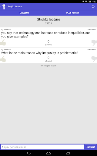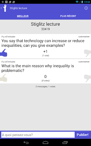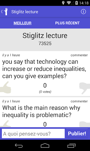 Ainsi un modérateur peut identifier les questions qui intéressent les gens et les poser de vive voix.