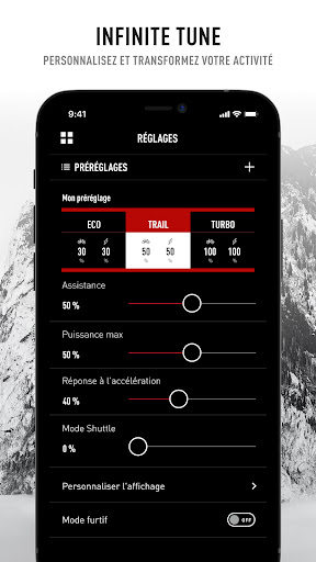 La fonction réglage vous permet de personnaliser les caractéristiques de votre moteur, telles que le niveau d’assistance et le pic de puissance, et d’autres paramètres réglables.
