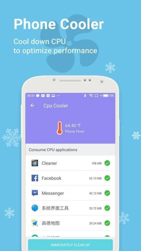 Real-time monitoring of mobile phone CPU temperature, battery temperature, the timely termination of power consumption applications, to avoid overheating the phone temperature.
