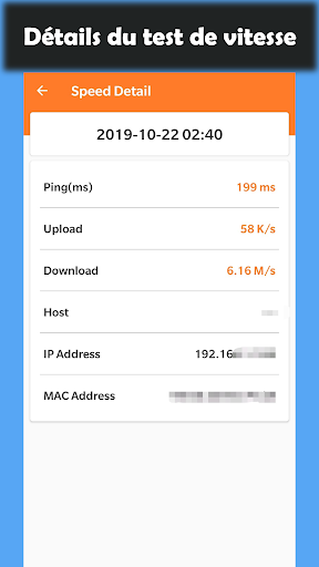 Test de vitesse - Test de vitesse Internet et WiFi facilite le test de votre vitesse Internet et Wi-Fi et les résultats du test de vitesse sont présentés de manière conviviale.
