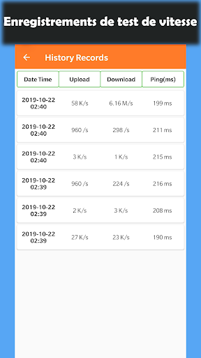 Enregistrer automatiquement les résultats passés du test de vitesse Sur Internet.