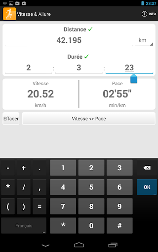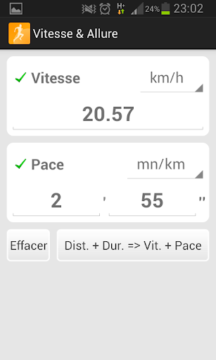 Cette app peut être utilisée pour le calcul la vitesse ou de l'allure (pace) de course à pied mais aussi vélo, aviron, échasses, course de sac a patate...