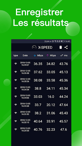 Le rapport de testeur de vitesse en temps réel est enregistré à la page de résultats. Il suffit de glisser l’écran pour terminer la vérification et supprimer les données de test de vitesse. Facile d’analyser le changement de valeur de la vitesse de l’Internet à l’aide de données d’historique de comparaison. L'outil peut également vérifier le test wifi. Ces serveurs stables peuvent supporter des millions de tests de vitesse chaque minute. WiFi Master apportera plus de détails sur la vitesse de l'internet Si vous voulez commencer le test 3G, le test 4G et le test wifi. Ceux-ci ont un type de réseau, une valeur de téléchargement, d'envoi et de ping. Chaque test Internet peut être facilement consulté à la page de résultats.