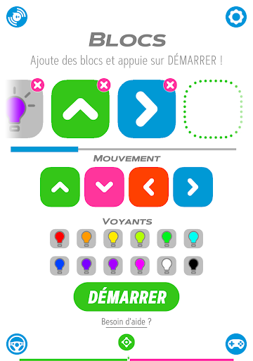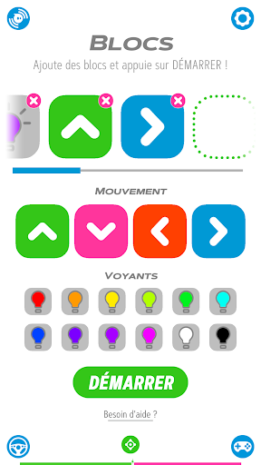 Apprends les bases de la programmation à l'aide de blocs colorés qui te permettent de contrôler les mouvements et les voyants de ton robot.