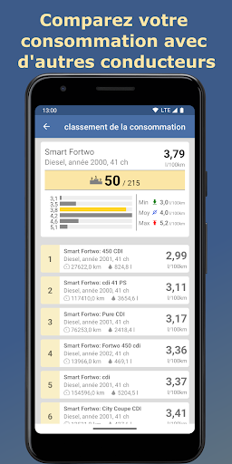 • 🏆 Comparez votre consommation de carburant avec d'autres conducteurs