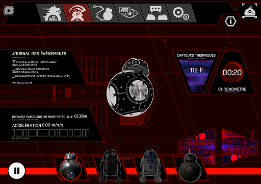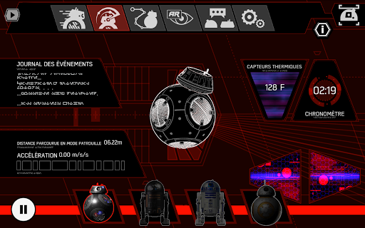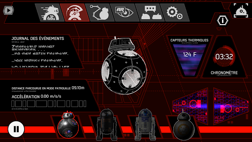 Chaque droïde possède son propre environnement à explorer. BB-8 te fera visiter le Raddus, un Croiseur de la Résistance, BB-9E sera ton guide sur le Supremacy, un Destroyer Stellaire du Premier Ordre, R2-D2 te permettra d'explorer le Faucon Millenium, et tu pourras découvrir l'Étoile de la Mort II avec R2-Q5.