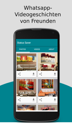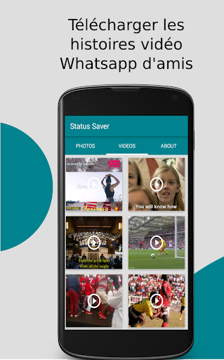 Téléchargeur de statut pour whatsapp téléchargez les photos de statut et les vidéos postées par vos amis Sauvegardez WhatsApp Story Images, Vidéos et GIFs Postés par vos amis sur WhatsApp. Vous pouvez facilement visualiser les images et les histoires vidéo récentes de WhatsApp partagées par des amis. Ouvrez simplement notre application et cliquez sur l'histoire que vous voulez voir et téléchargez-la ! C'est si simple ! Comment l'utiliser ? 1. Tout d'abord, vous devez regarder Status à partir de votre application de messagerie Whatsapp d'origine. 2. Ensuite, ouvrez cette application, elle numérisera et affichera que la photo, le GIF ou la vidéo seront vus. 3. Vous pouvez enregistrer directement des images ou des vidéos de profil sur votre stockage ou vous pouvez les partager sur les médias sociaux. L'image/la vidéo est instantanément enregistrée dans votre galerie. Caractéristiques de l'économiseur de statut pour Whatsapp : Télécharger Statut Télécharger Histoire (images/vidéos) Voir les histoires vidéo en plein écran