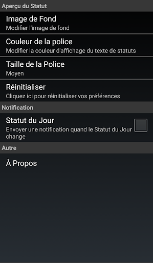 • Configurer la fonctionnalité de notification Statut du Jour pour recevoir un statut aléatoire par mise à jour de notification.