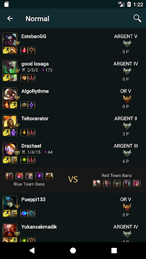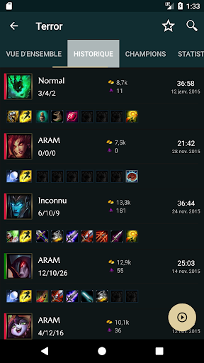 * Historique des matchs, statistiques classifiées et informations précises sur tous les invocateurs