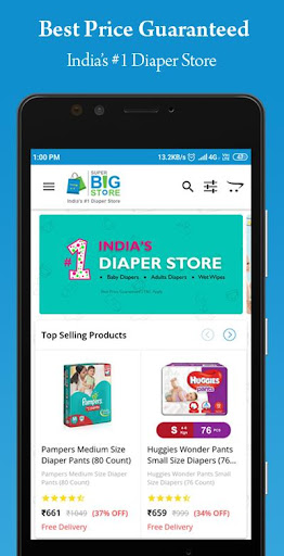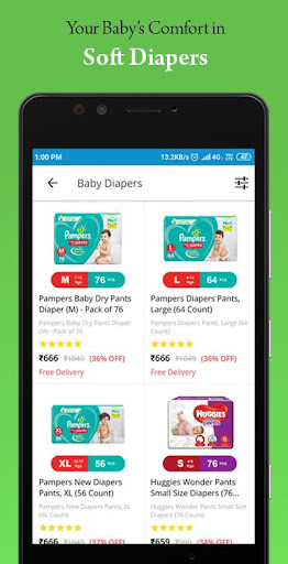 Baby Diapers Online store App for Baby with Best Deals & Discount and Provides Easy Comparison while Choosing Diapers for baby's.