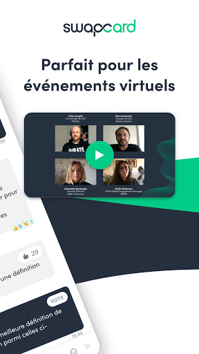 Swapcard est une plateforme événementielle de networking alimentée par une intelligence artificielle permettant d'organiser avec succès des événements physiques, virtuels et hybrides. L'IA suggère les personnes les plus pertinentes à rencontrer selon son profil et intérêts, et permet de se créer une expérience personnalisée. Accompagnée de son espace exposant qui permet de suivre son retour sur investissement en temps réel, de streaming en direct, d'outils d'interactivité et des fonctionnalités d'appels vidéos, Swapcard offre une experience participant unique pour tous types d'événements.