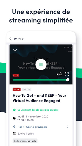Les notifications vous permettent de ne jamais manquer les sessions et rendez-vous que vous avez planifiés. Et vous restez alertés grâce aux mises à jour en temps réel et les annonces de l’organisateurs.