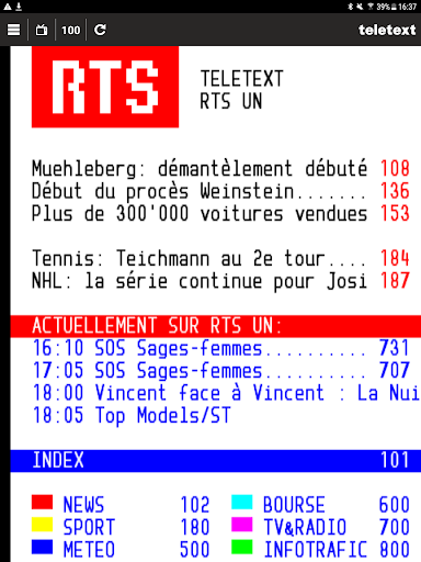 Cette application ne sera plus développée et sera bientôt retirée du store. Veuillez utiliser l'application Native Teletext entièrement renouvelée, disponible gratuitement dans le store (icône avec écriture noire sur fond blanc).