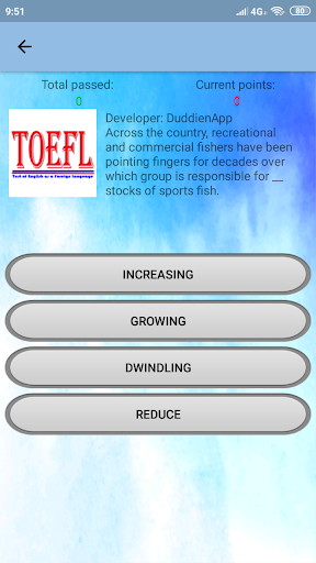 Cette application vous aiderait à vous préparer à fond pour le test de pratique TOEFL.Téléchargez l'application et si vous aimez l'application, évaluez l'application A 5Star.