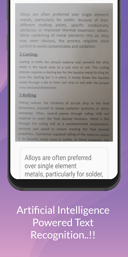 TTS App provides an added advantage of extracting all the texts from any image or photo just by scanning through the mobile's in-built camera which can be then copied by a simple button click and then save the audio file in MP3 format and export it as a PDF Document.