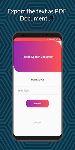 TTS-Text to Speech converter is an application used to convert text to speech .It uses AI powered OCR (Optical Character Recognition) to extract the text input form any image or photo and converter it to speech which can also be saved as MP3 file.