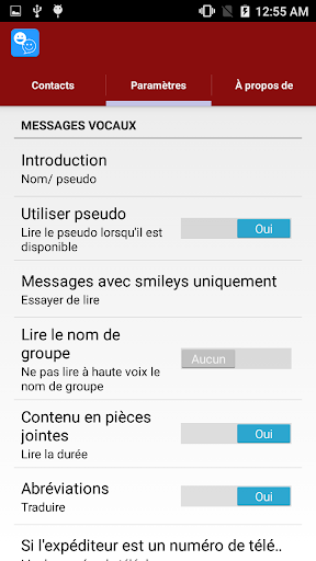 • Réglez les paramètres pour lire le nom du groupe, la durée des messages multimédias Whatsapp, les smileys Whatsapp, les autocollants ou les emojis.