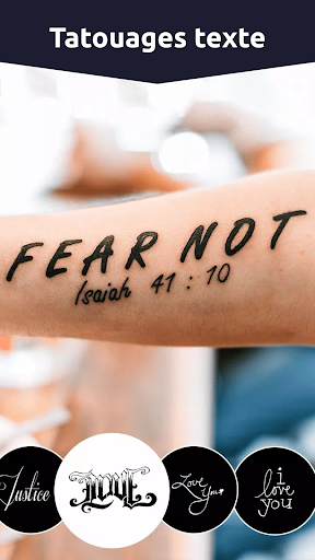 Cet éditeur de photos de tatouage est très utile pour les hommes et les filles qui ne veulent pas dessiner de tatouages en ligne de fond flou sur le corps, mais qui aiment montrer des tatouages et de petits tatouages pour hommes recouvrent des autocollants de tatouage dans les médias sociaux. À l'aide de tatouages dédiés à l'application de photo de tatouages pour enfants, vous pouvez écrire le nom de votre amoureux, votre nom d'animal avec un tatouage d'amour, tatouage en forme de cœur, tatouage d'amitié, tatouage de styliste, tatouage en couple, tatouages de scorpion, tatouage pour fille, tatouage pour homme et beaucoup autres et les meilleures applications de conception de tatouages temporaires pour la main des hommes. Vous pouvez utiliser cette application de tatouage comme référence avant de dessiner une application de conception de tatouage permanente pour la conception d'images sur ma main.
