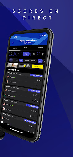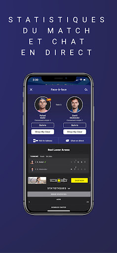 Nous nous associons également à des tournois de premier plan tout au long de l'année en tant qu'"application officielle", notamment le Miami Open, le Hall of Fame Open et les championnats de tennis de la division 1 de la NCAA, pour n'en nommer que quelques-uns. Lors des événements partenaires, vous aurez accès aux scores de tennis, aux statistiques et à tout ce qui a été mentionné précédemment, ainsi qu'à :