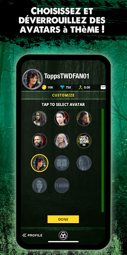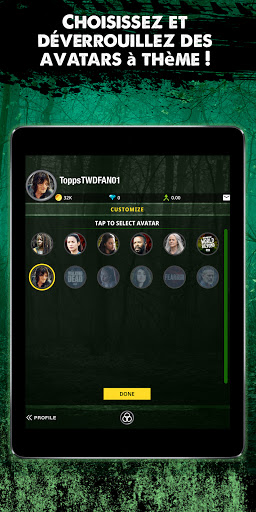 • Déverrouillez et choisissez des thèmes d'avatars The Walking Dead Universe !