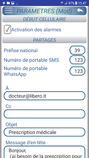 En outre, il est possible de partager (sms, email, WhatsApp, ...) avec le médecin les