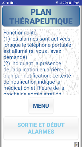 (1) ne pas oublier de fermer l'application avec le bouton ”Sortie et Début alarmes”