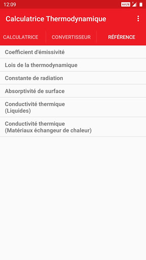 Calculatrice Thermodynamique contient 58 Calculateurs, convertisseurs et références, qui peuvent rapidement et facilement calculer, convertir et fournir différents paramètres thermodynamique et d'ingénierie thermique. Valeurs et les résultats calculés peuvent être partagés avec les médias sociaux, le courrier, les messages et d'autres applications de partage. Les calculs et conversions automatiques et précis avec tous les changements de valeur. A Complete thermique Dictionnaire de l'ingénierie.