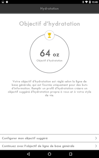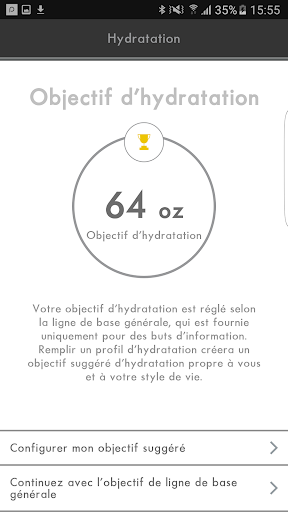 •Fixez un objectif d’hydratation quotidienne recommandé à l’aide du calculateur intégré d’hydratation