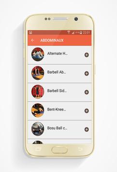 - Exercices en catégorisation (les abdos, la poitrine, les épaules, le dos, les biceps, les avant-bras, les triceps et les mollets)
