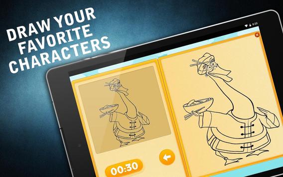 En outre, vos professeurs d'art seront vos personnages «Panda» préférés, comme Po, Tigres et Shifu. Maintenant, vous pouvez non seulement regarder vos dessins animés préférés, mais également apprendre à dessiner leurs personnages! Train dans le ventilateur Dessin Kung Fu Panda: secrets des caractères de défilement et placez vos propres enregistrements dans le dessin à grande vitesse. Toutes ces activités et beaucoup plus impressionnantes vous attendent dans l'application «Time Draw Kung Fu Panda»!